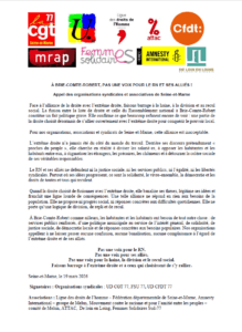 APPEL DES ORGANISATIONS SYNDICALES ET ASSOCIATIVES DE SEINE-ET-MARNE: A BRIE-COMTE-ROBERT PAS UNE VOIX POUR LE RN ET SES ALLIES! 2026-03-20T12:29:31+01:0020 mars 2026|Catégories : À LA UNE|Mots-clés : COMMUNIQUÉS| Partagez cet article ! FacebookWhatsAppTelegramEmail Articles similaires Mobilisation régionale contre le saccage de l’école publique : mardi 17 février 2026 ! Mobilisation régionale contre le saccage de l’école publique : mardi 17 février 2026 ! 9 février 2026 Journée internationale de lutte pour les droits des femmes en solidarité avec les femmes du monde entier Journée internationale de lutte pour les droits des femmes en solidarité avec les femmes du monde entier 30 janvier 2026 AESH sacrifiées : un choix politique contre l’école inclusive ! AESH sacrifiées : un choix politique contre l’école inclusive ! 19 janvier 2026 MUNICIPALES : ÉCOLE PUBLIQUE, CAUSE COMMUNE. MUNICIPALES : ÉCOLE PUBLIQUE, CAUSE COMMUNE. 19 janvier 2026 Exercice du droit syndical, rappel du cadre réglementaire et des limites du pouvoir hiérarchique Exercice du droit syndical, rappel du cadre réglementaire et des limites du pouvoir hiérarchique 5 janvier 2026